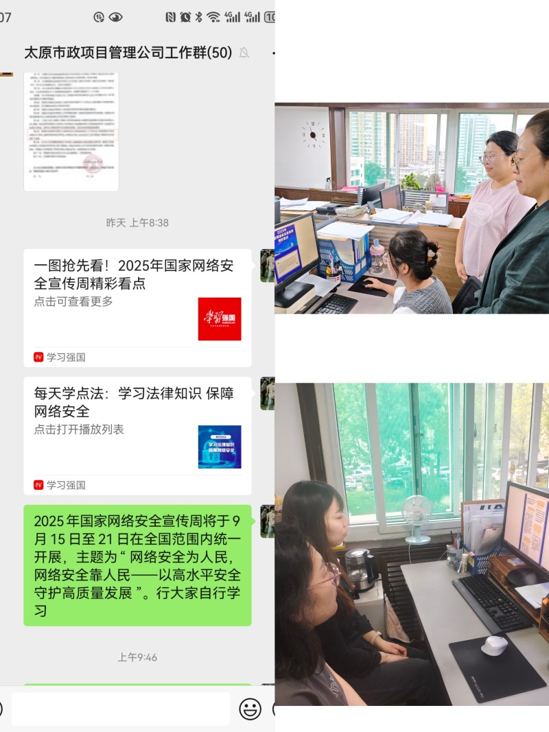 9月15日至21日,項目管理公司黨支部開展“學法用法強本領 同筑安全防護墻”專題活動。此次活動聚焦《網(wǎng)絡安全法》《數(shù)據(jù)安全法》《個人信息保護法》等核心法律條規(guī),結合生活中常見的網(wǎng)絡詐騙、信息泄露等案例進行解讀與分析,引導黨員干部把所思所學融入工作與生活,不斷增強辨識與抵御網(wǎng)絡風險的能力,爭當網(wǎng)絡空間清朗環(huán)境的維護者、踐行者。