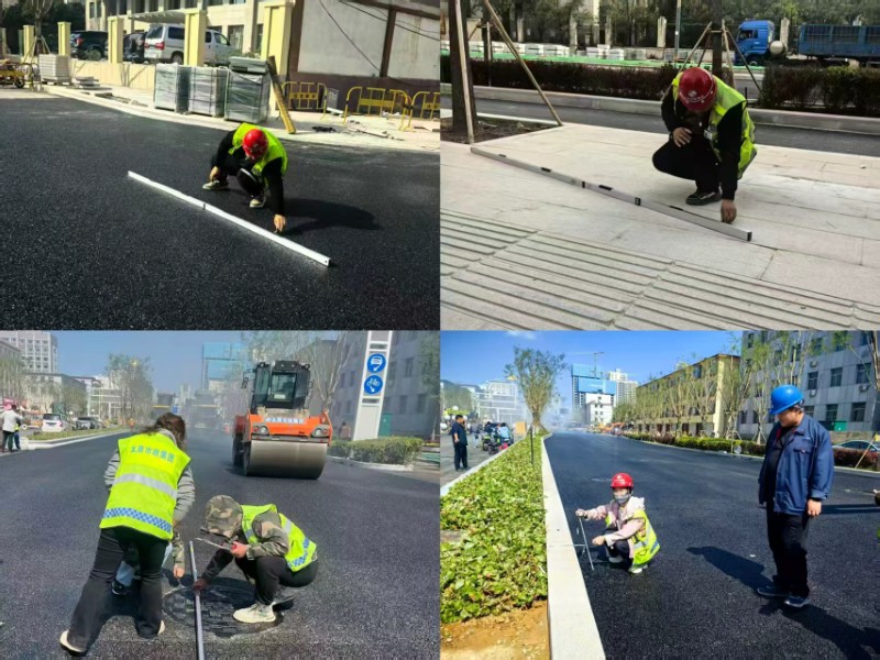 理論與實踐緊密結合,方能彰顯力量。各在建項目部積極響應,組建由項目經(jīng)理掛帥,工長、質(zhì)檢員協(xié)同作戰(zhàn)的質(zhì)量檢查小組。他們攜帶測溫儀、塞尺、鋼直尺等專業(yè)工具,深入施工現(xiàn)場,對道路面層與工程材料展開“地毯式”排查,從路面平整度到材料規(guī)格,不放過任何細微之處,將質(zhì)量管控觸角延伸至施工現(xiàn)場的每一角落,用實際行動守護工程質(zhì)量的“生命線”。