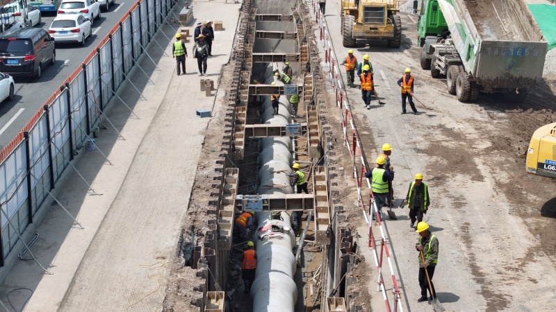 太原市政集團(tuán)堅(jiān)決扛牢使命擔(dān)當(dāng),強(qiáng)化統(tǒng)籌、多方聯(lián)動(dòng),想盡一切辦法,克服一切困難,全面對(duì)標(biāo)看齊“迎澤標(biāo)準(zhǔn)”,堅(jiān)持以全局觀念和系統(tǒng)思維謀劃推進(jìn)項(xiàng)目建設(shè),采用半幅封閉施工、平行流水作業(yè)方式,克服工程體量大、施工內(nèi)容繁重、建設(shè)工期緊張等困難與挑戰(zhàn),一體推進(jìn)道路、管線、照明、沿線景觀等建設(shè)任務(wù)。項(xiàng)目伊始,規(guī)劃“導(dǎo)航圖”,研討節(jié)點(diǎn)安排、工序銜接、資源配置等關(guān)鍵環(huán)節(jié),制定十余套專項(xiàng)施工方案,優(yōu)化組織設(shè)計(jì),形成管理閉環(huán);繪制“進(jìn)度表”,建立分級(jí)負(fù)責(zé)、動(dòng)態(tài)調(diào)整的進(jìn)度管控體系,提升9個(gè)工區(qū)自主管理效能,錨定工期目標(biāo),加快施工效率。施工過(guò)程中,掃清“攔路虎”,采用鋼板樁支護(hù)、分層開(kāi)挖、放坡開(kāi)挖工藝,克服地下管線復(fù)雜、開(kāi)挖深度大、地下水高等難點(diǎn),確保管網(wǎng)升級(jí)與地鐵運(yùn)營(yíng)和諧并行;保持“攻堅(jiān)態(tài)勢(shì)”,針對(duì)重難點(diǎn)部位,提前制定專項(xiàng)方案,全部進(jìn)行技術(shù)交底,著重加強(qiáng)安全、質(zhì)量管控,形成高效施工態(tài)勢(shì)。注重以人為本,提升“施工溫度”,細(xì)化各項(xiàng)便民、利民措施,最大限度降低對(duì)市民日常生活的影響,保障通行需求;擦亮“市政名片”,開(kāi)展道路清理志愿服務(wù)活動(dòng),用實(shí)際行動(dòng)為城市“美容”,展現(xiàn)國(guó)企擔(dān)當(dāng)。